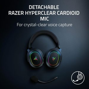 - DETACHABLE RAZER HYPERCLEAR CARDIOID MIC — Be heard clearly during gaming and calls with a mic that’s tuned to suppress background noise; make the headset more travel friendly for mobile use by removing it at any time