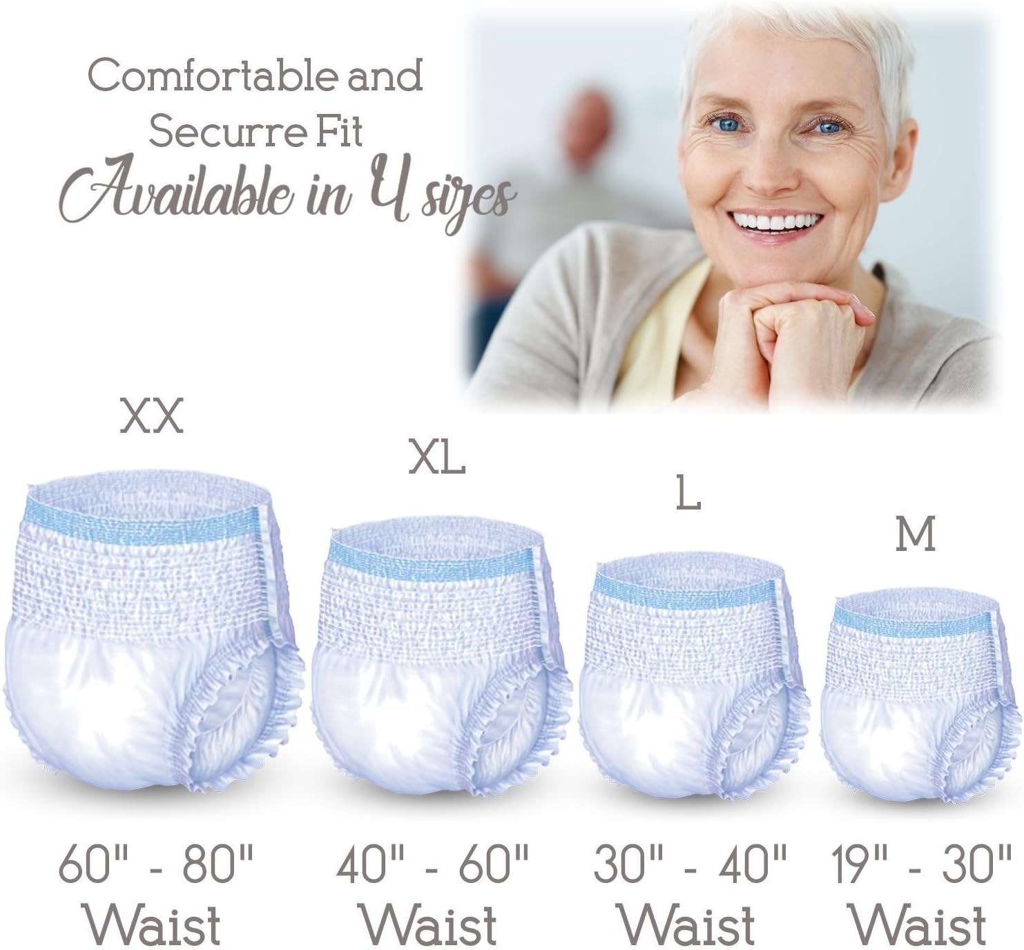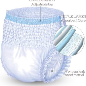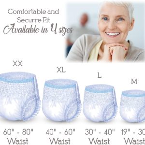 - SIZE MEDIUM. With a unique scheduled changing system, these pull-ups are easy to remove and reapply throughout the day. The medium size is designed to fit 19″–30″ waists.
