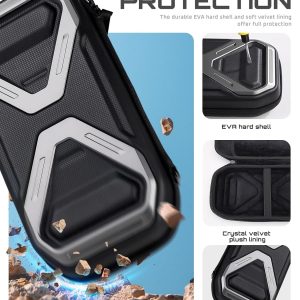 - Premium Protection: The waterproof PU exterior is fused with a rugged EVA-molded shell, reinforced with metallic plastic components on the top cover for enhanced drop resistance. The top lid features built-in shock-absorbing padding that provides anti-shock, drop-proof protection while absorbing external impacts and compression. Waterproof and scratch-resistant, it safeguards your console against accidental bumps and spills. Inside, the plush velvet lining prevents damage to your Switch 2’s body and screen, ensuring 360° all-around protection.