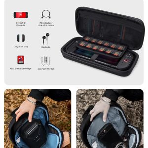 - High-Capacity Storage: Custom compartments for your console, Joy Con, charging cable, and accessories. Secure slots hold up to 12 game cartridges, keeping everything organized for easy access and on-the-go gaming.